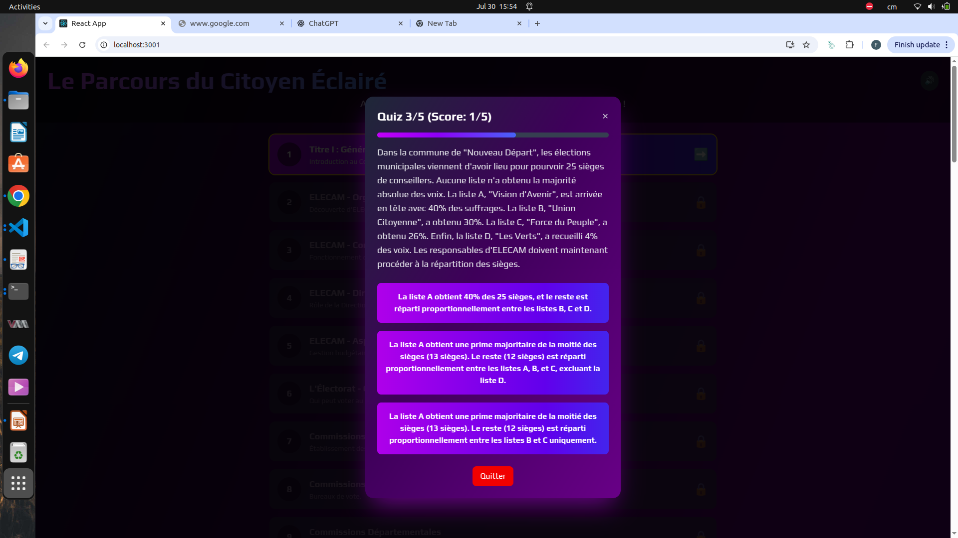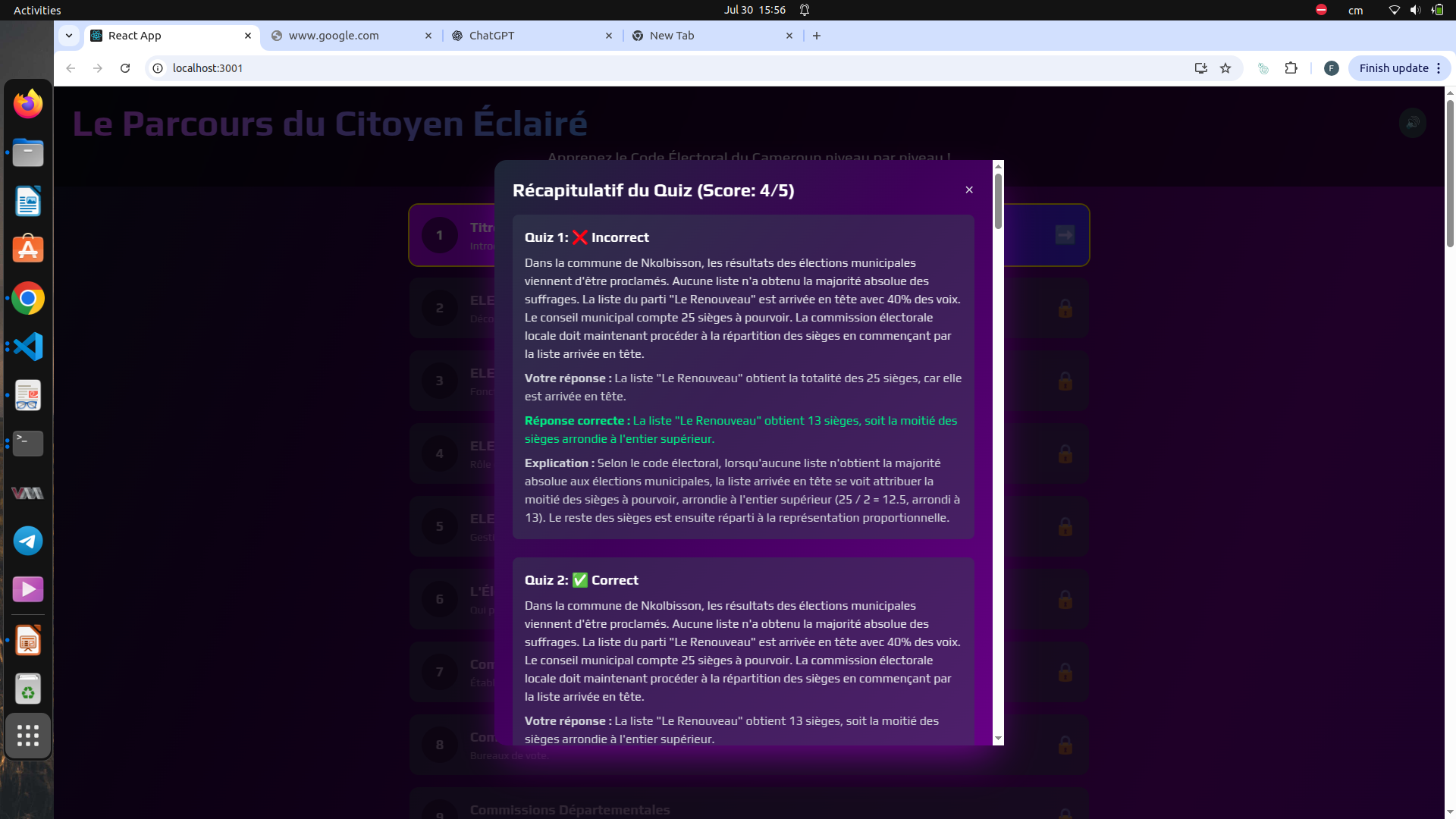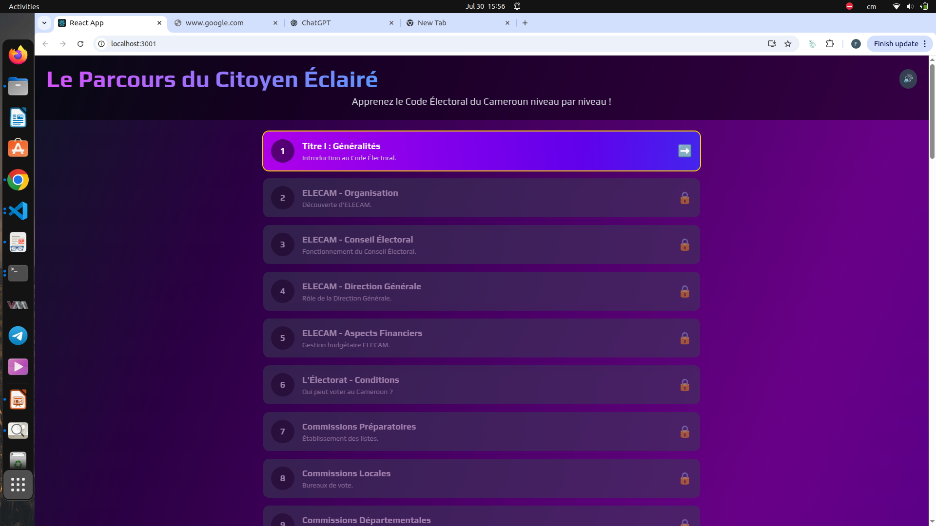 Participated in the Summer School on Digital Health and IoT Hackathon (Ambam, Cameroon, 28-08-2025). Developed a gamified AI-powered quiz application to help citizens better understand the Cameroonian constitution and electoral code through real-life scenarios and interactive gameplay.