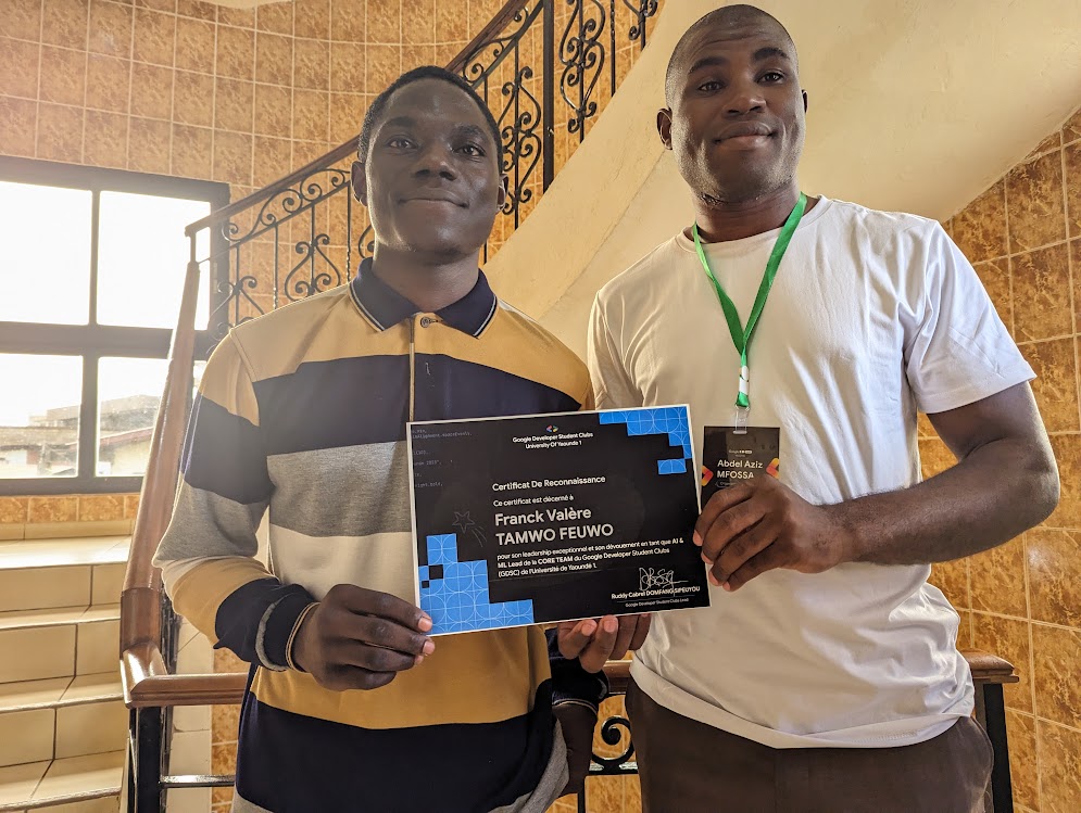 Participated in the Google I/O Extended Yaoundé, a community-organized tech conference showcasing the latest in Google technologies. During that i received my recognition for having served the Google Developer community as the AI & ML Lead from the Google Developer Group Lead Abdel Mfossa